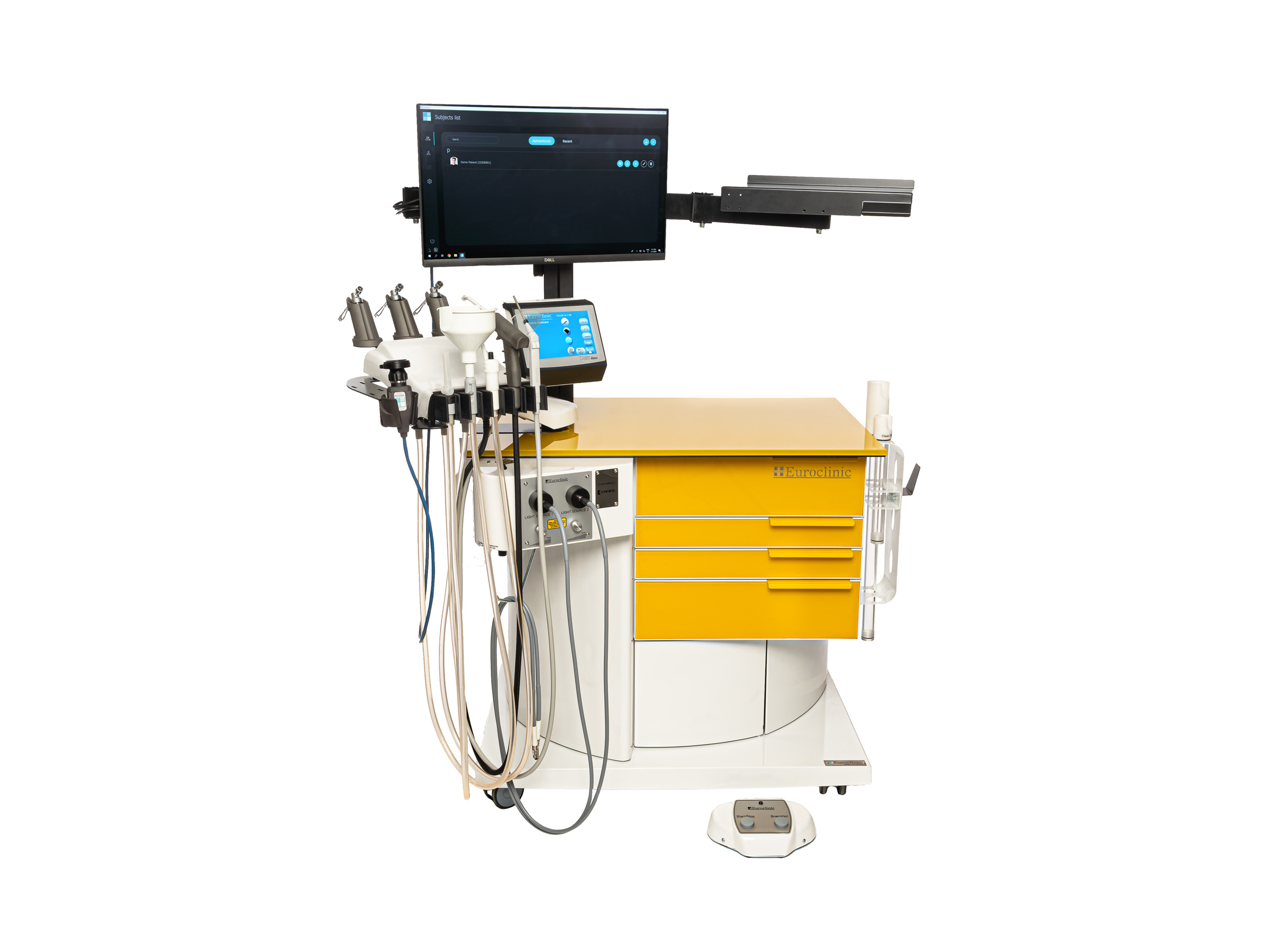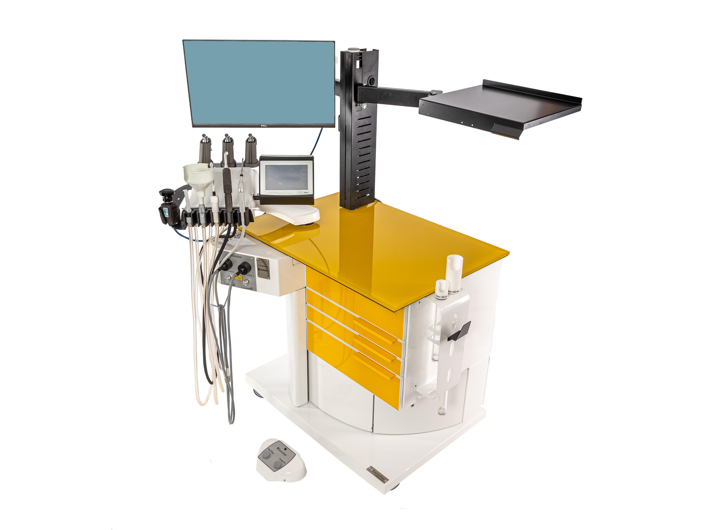 Корпус ЛОР-установки, изготовленный из антикоррозионной стали, окрашенный эпоксидной порошковой краской. Простота управления креслом с помощью сенсорного дисплея, расположенного около инструментальной консоли. Все инструменты всегда находятся под рукой благодаря четырем выдвижным ящикам и поворотной инструментальной консоли с креплениями для приборов. Визуальная (на экране) и акустическая (звуковой сигнал) система предупреждения о критических ситуациях при работе установки. Широкий набор инструментов. Подогрев зеркал (возможна установка таймера).